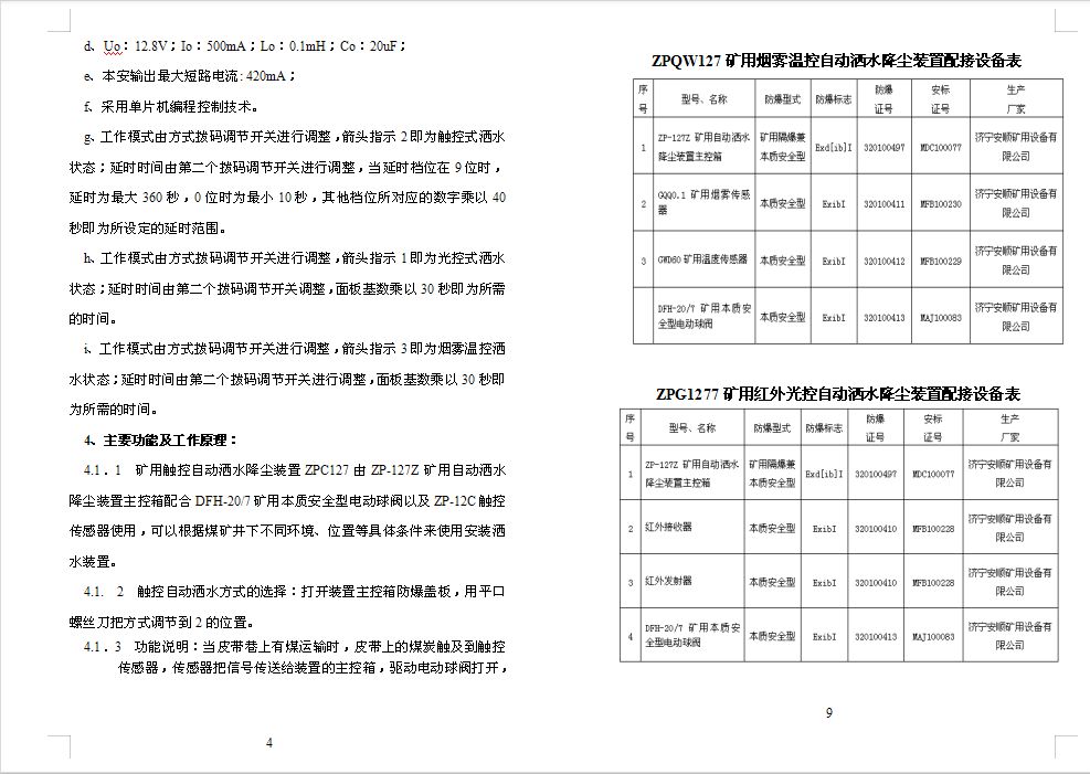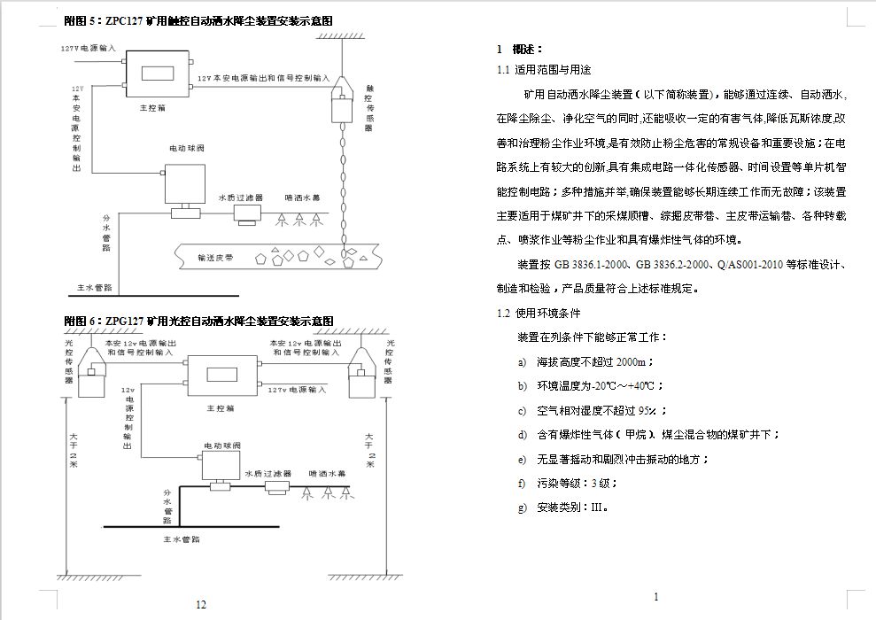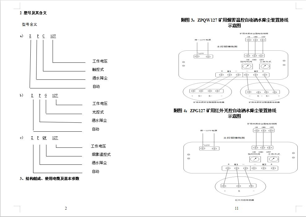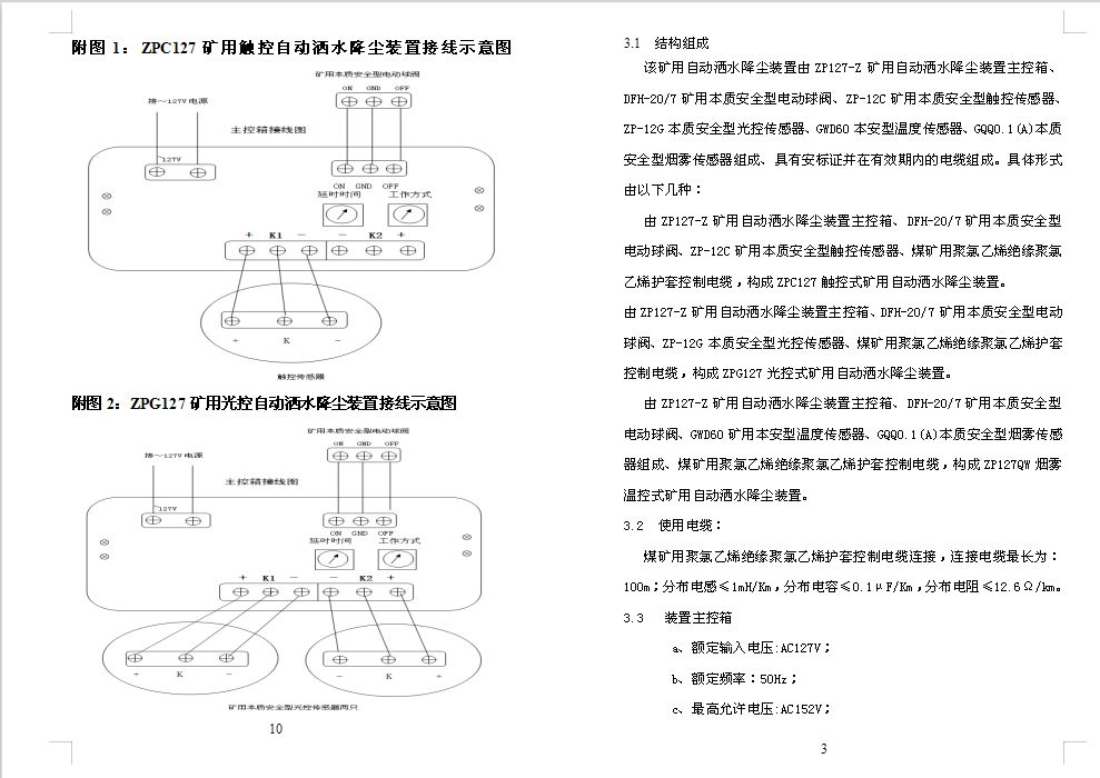ZP-127Z矿用自动洒水降尘装置主控箱使用说明书