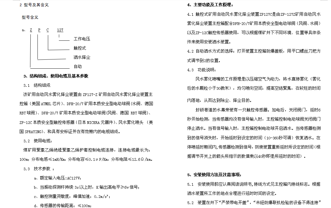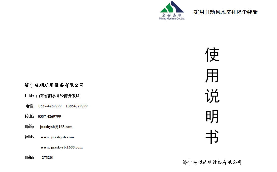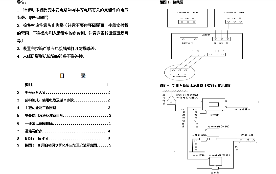 矿用风水雾化降尘装置说明书