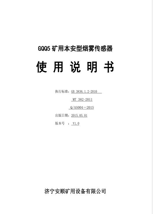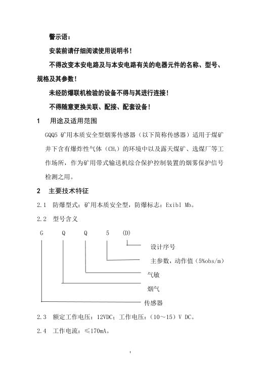 GQQ5矿用本质安全型烟雾传感器使用说明书